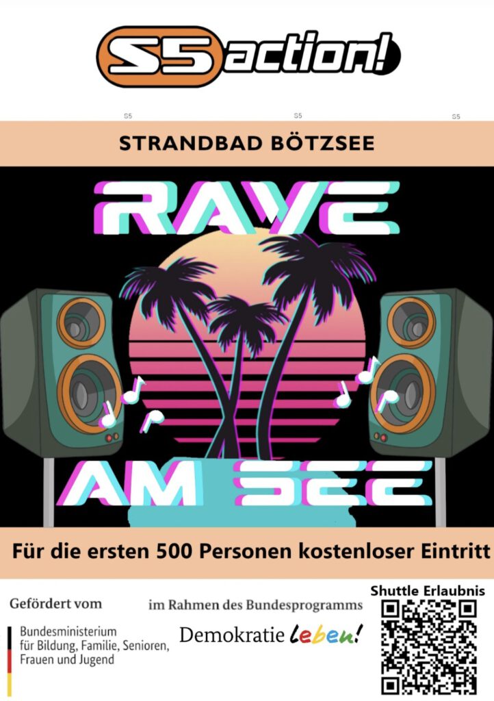 Wisst ihr wer am 18.07. vorm Strandbad Bötzsee Rave Schlange steht? Sicher nicht ihr, denn die ersten 500 kommen direkt rein! Mehrere DJs legen live auf und auf einer großen Tanzfläche könnt ihr Eure Dance Moves raushauen!;) Des Weiteren gibt es erfrischende Drinks und Snacks und auch einen Ruhebereich, falls ihr mal eine Pause benötigt. Kommt gerne vorbei!!