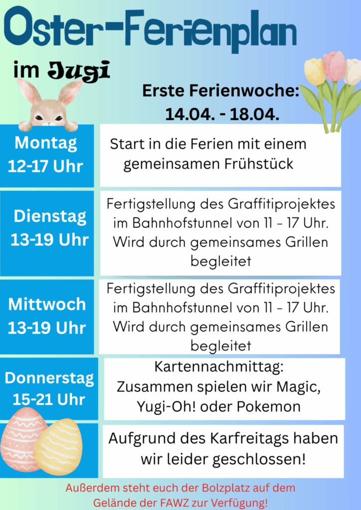 Daher wird es ein buntes Programm an Angeboten geben, vom Osterbasteln über Backen zum Sport.